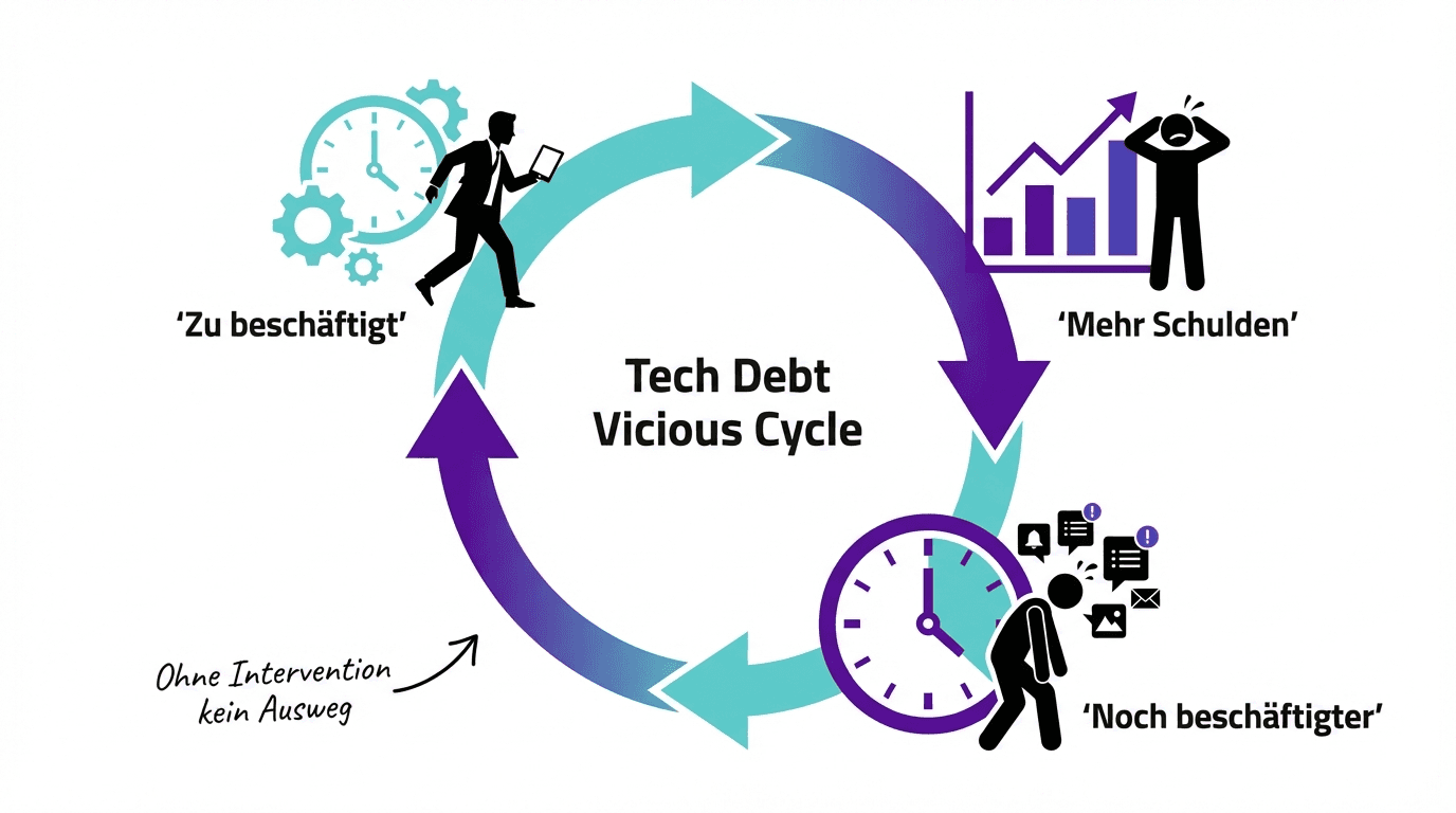 McKinsey nennt das den "Vicious Cycle of Tech Debt". Und ohne aktives Eingreifen bricht er nicht von selbst.